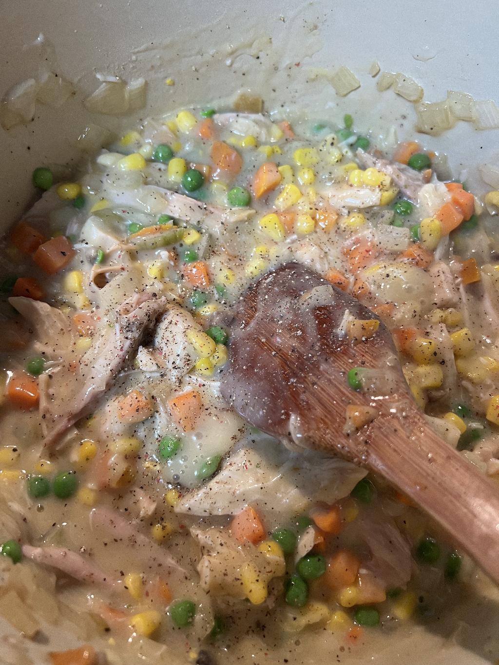 Step #17 Season with more Salt and Pepper. Reduce heat and allow to warm thru.