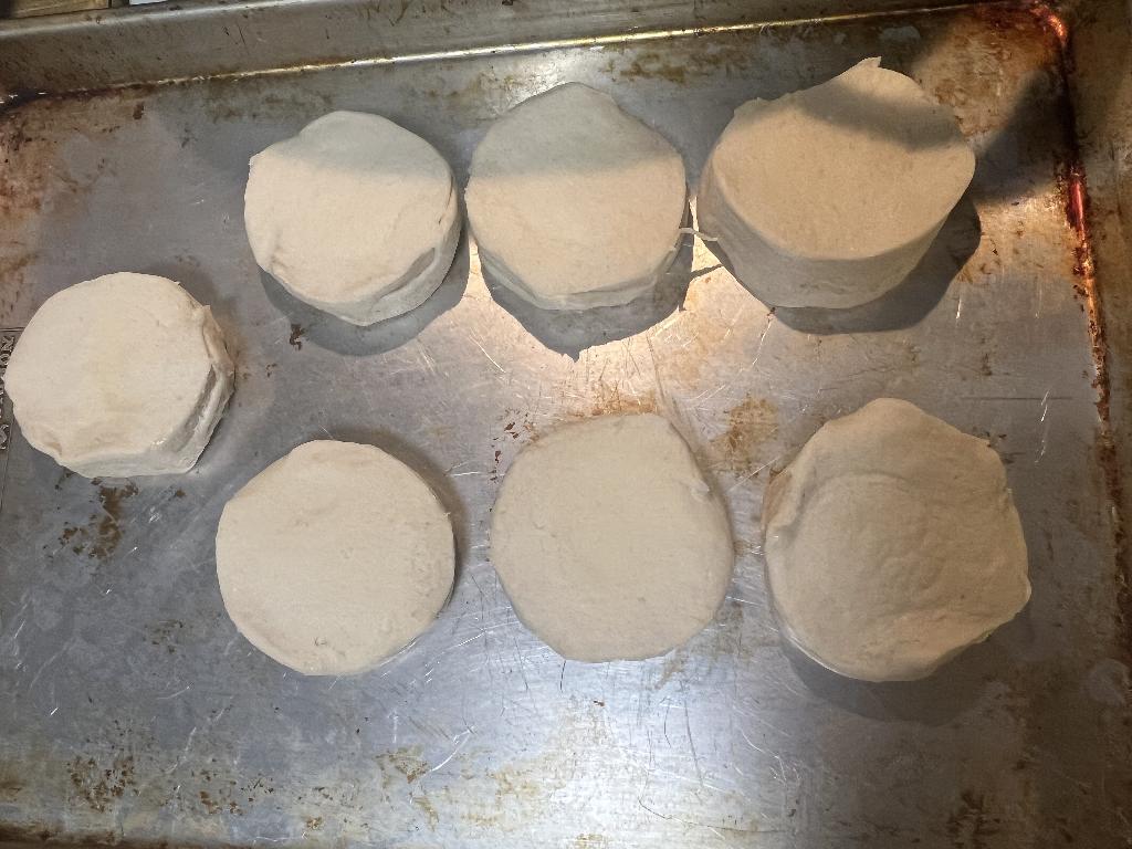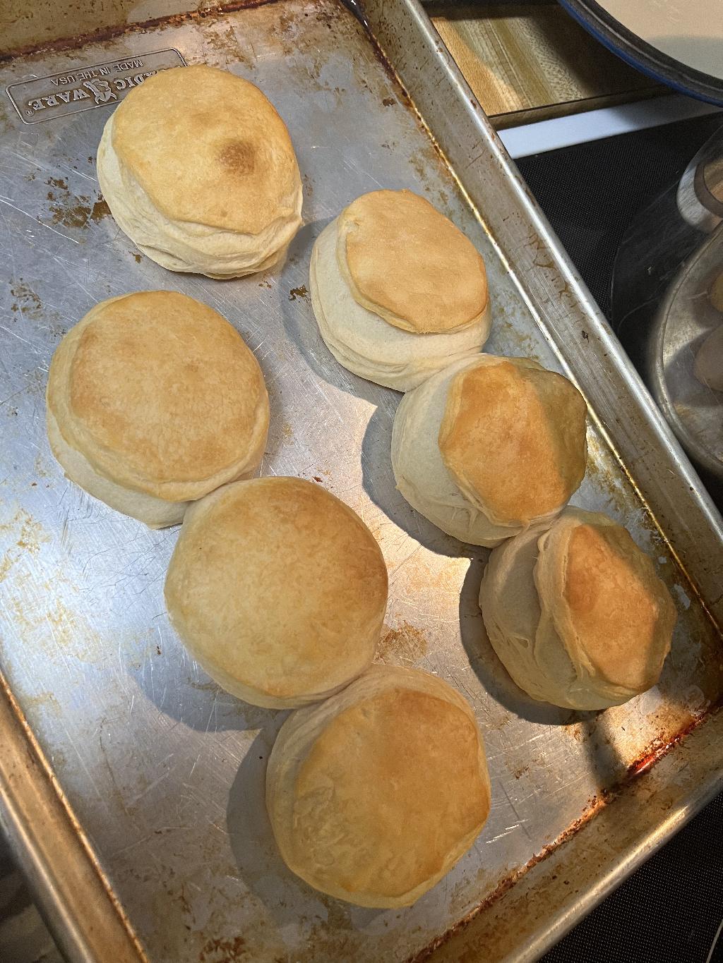 Step #18 If you're using biscuits, place them on a baking sheet and place in a 350 degree oven.