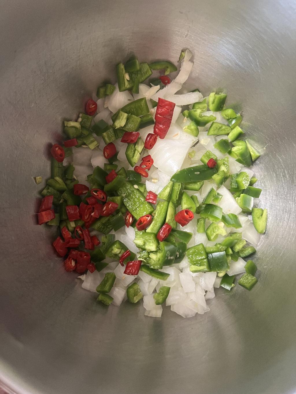 Step #2 Dice Onions and Peppers, Mince Garlic