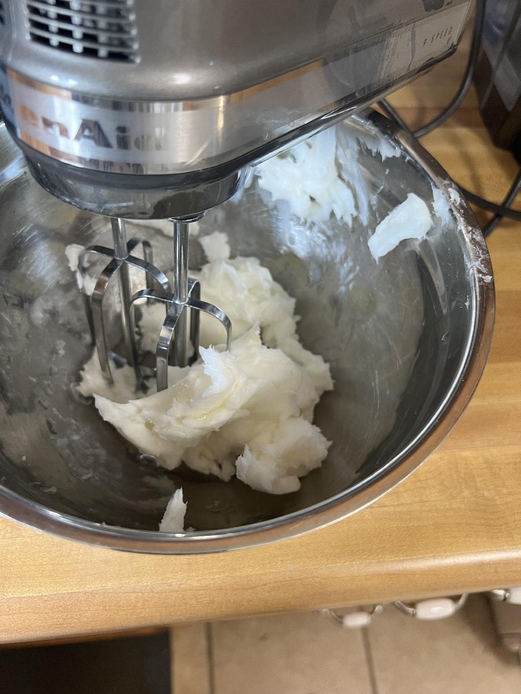 Step #2 Using an electric mixer on low setting start to beat the lard, gradually increasing the speed until it become fluffy.