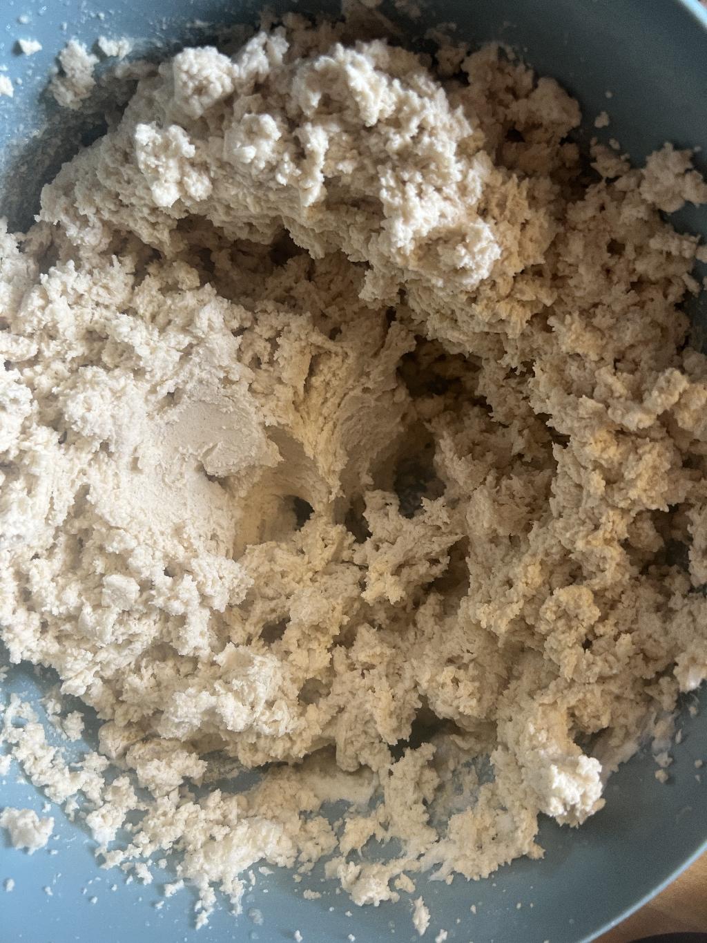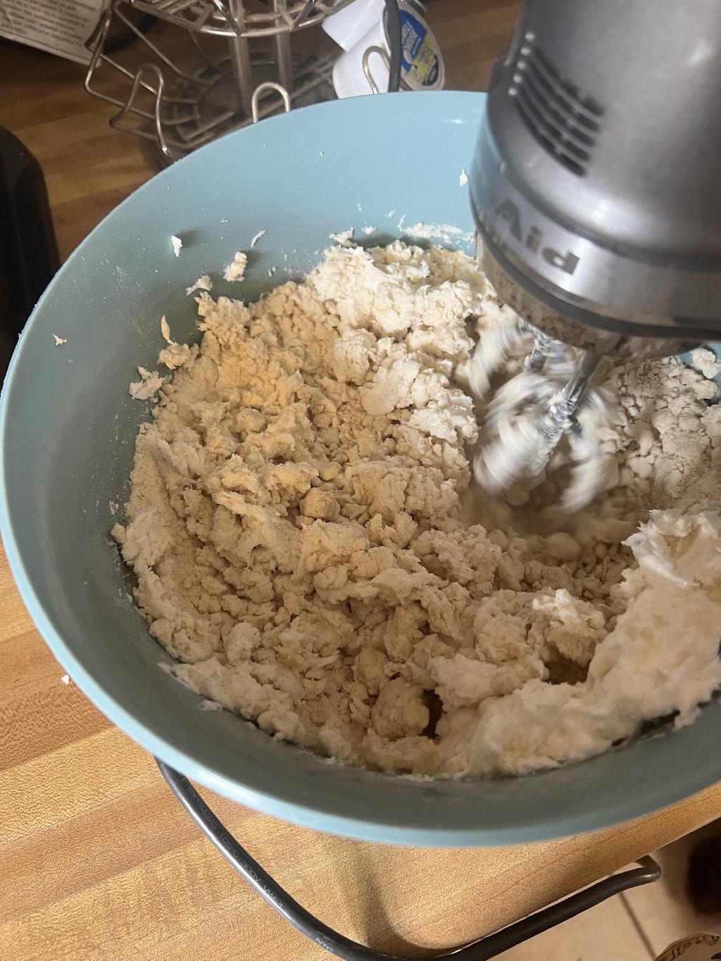 Step #6 Increase the spend, slowly add in pheasant stock. Dough should have a fluffy, creamy texture. Cover with damp cloth to keep from drying out.