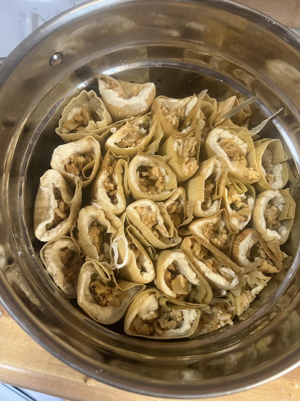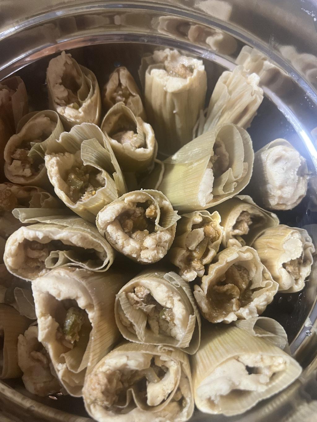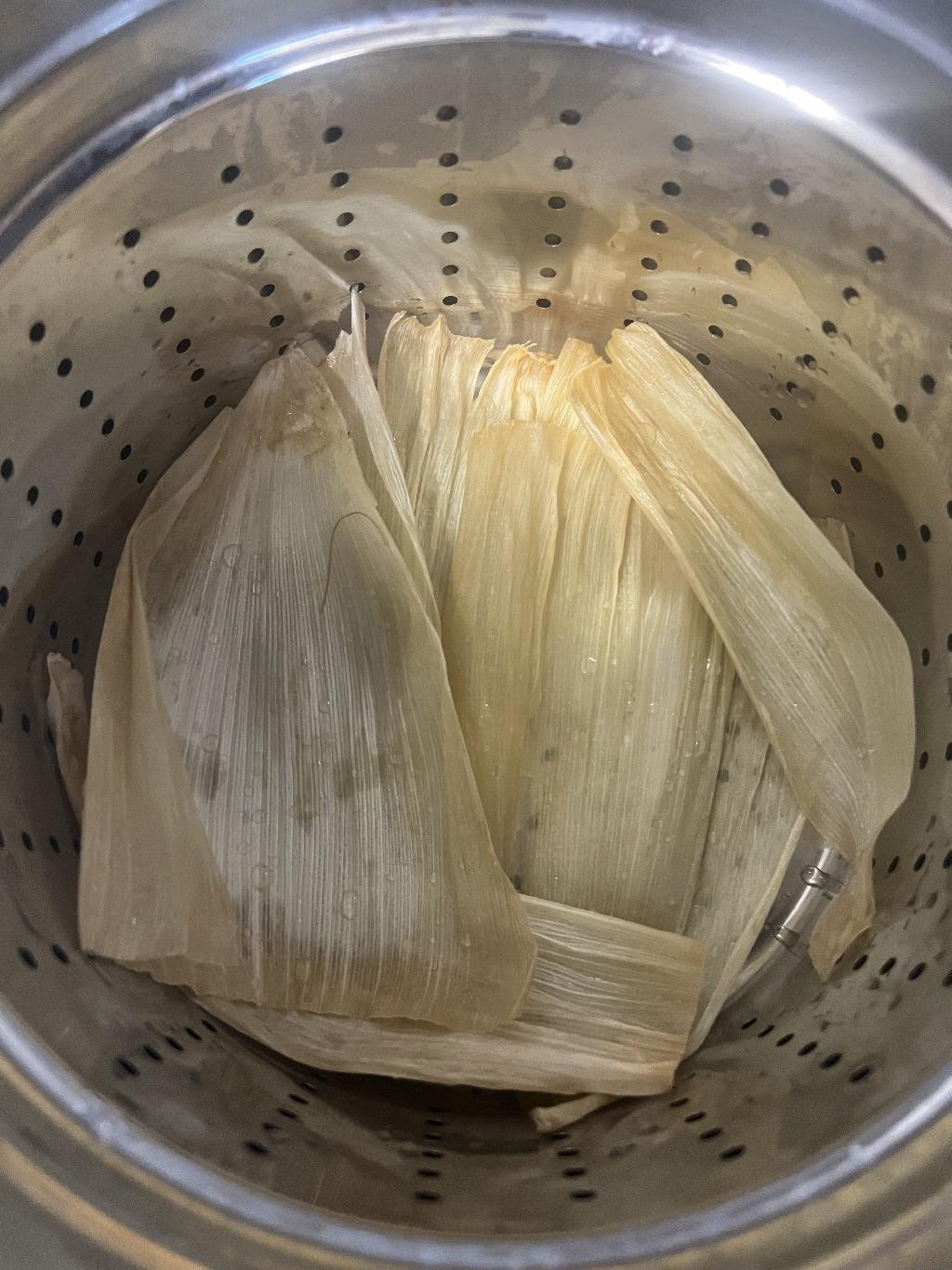 Step #15 Continue until all tamalas are done. Adding each one to the steamer.