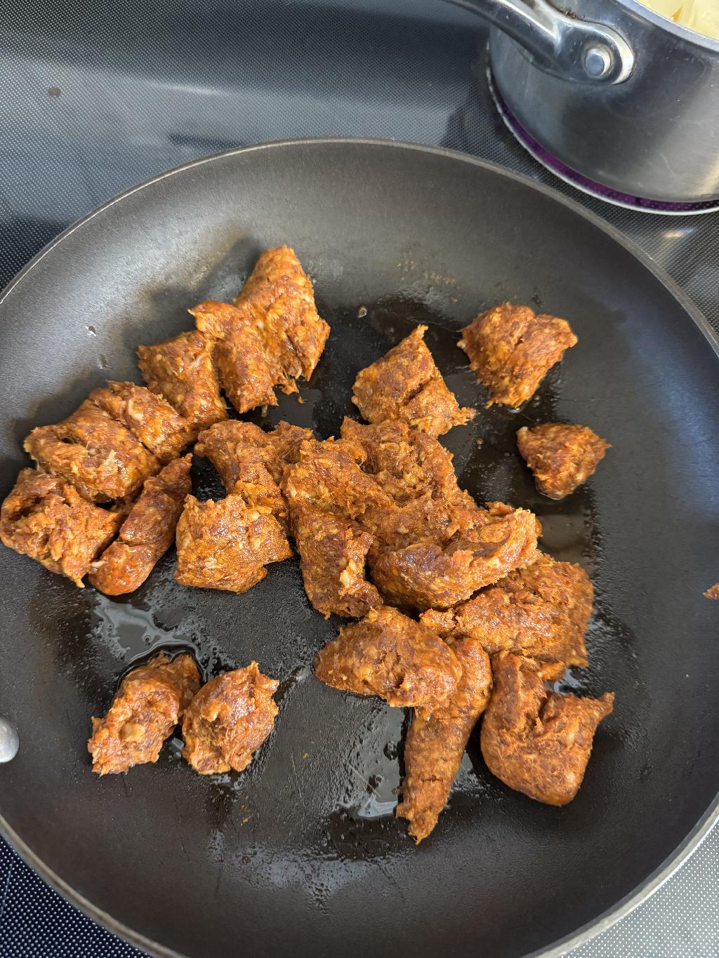 Step #1 Add the Chorizo to a non-stick skillet with the heat set on medium high.