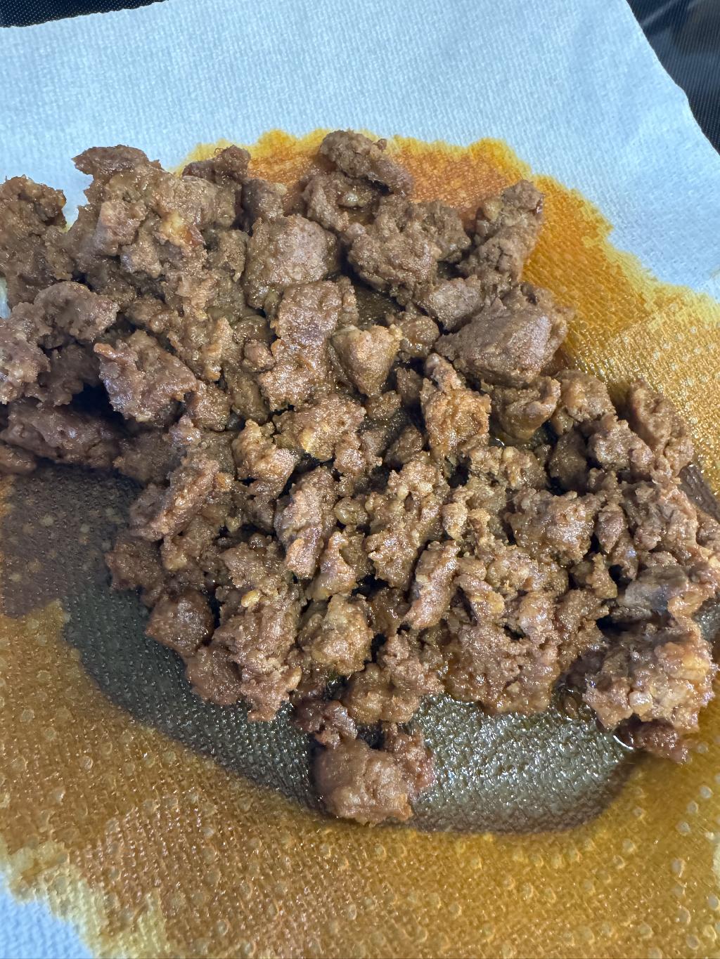 Step #2 Allow to cook for 6-8 minutes, then remove from skillet with a slotted spoon to a plate lined with paper towels. Drain excess oil from the skillet.