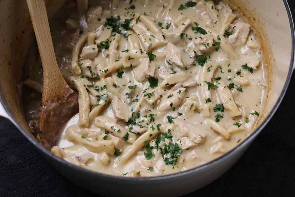 My cousins-in-law, Keith and Jo Ann Brown, are the epitome of the old-school, American home cook. Although in their 80s, they still host the extended family on major holidays, whipping out classics like they could do in their sleep. Here’s a recipe inspired by one of those visits: pheasant with homemade egg noodles. The gravy is to die for, and if you’re a true Midwesterner, you’d eat this over mashed potatoes. Because starch on starch is just how people roll out here.