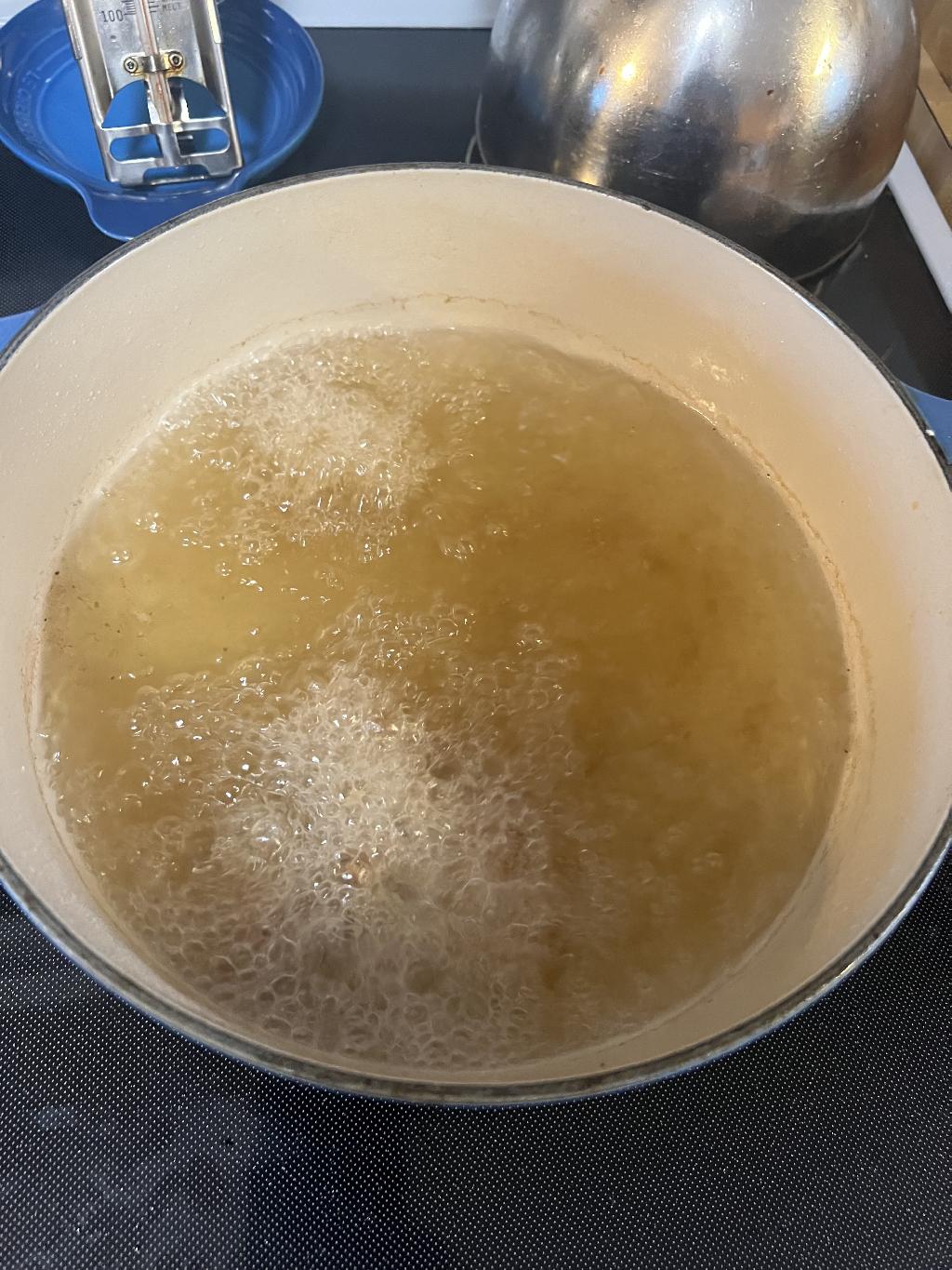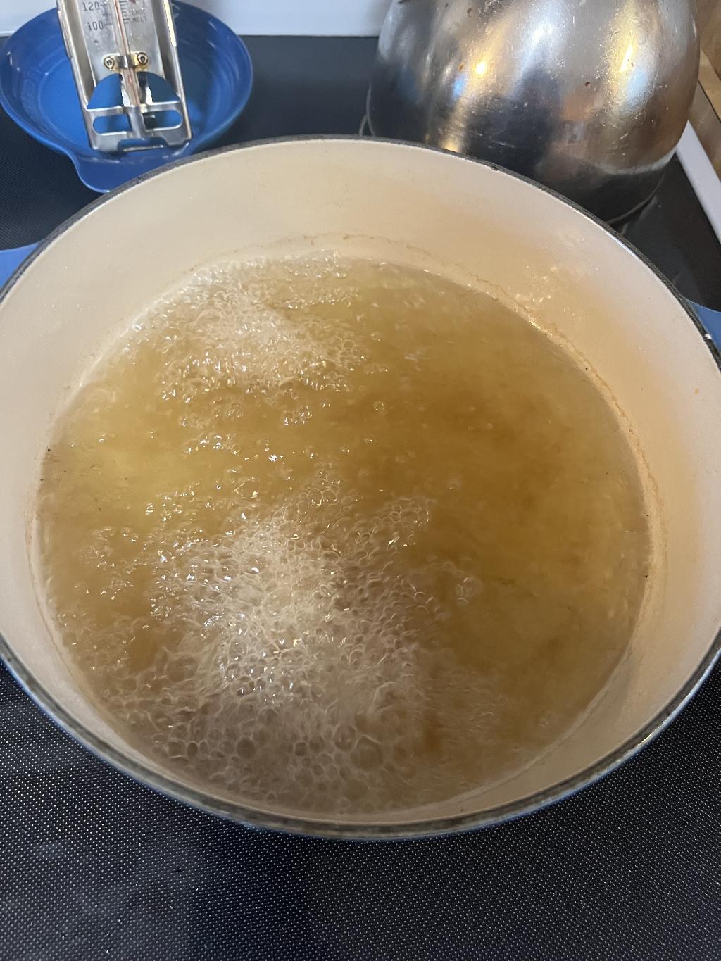 Step #6 Add enough vegetable oil to Dutch oven to allow Pheasant to float. Set heat to medium high and allow to reach 350 degrees.