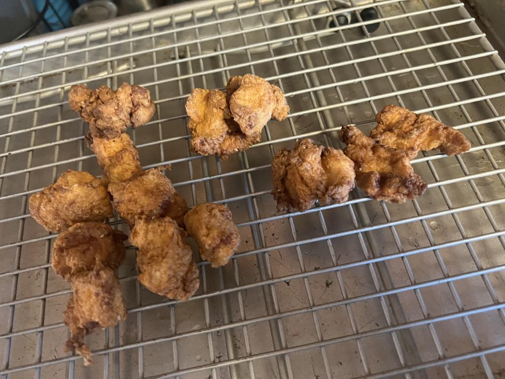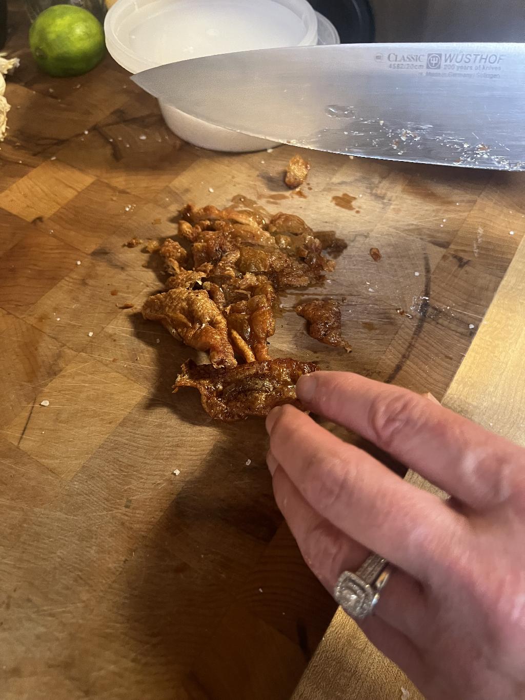 Step #10 Repeat until all the pieces are cooked. When done, add the pheasant skin to the fryer, cook until crisp.