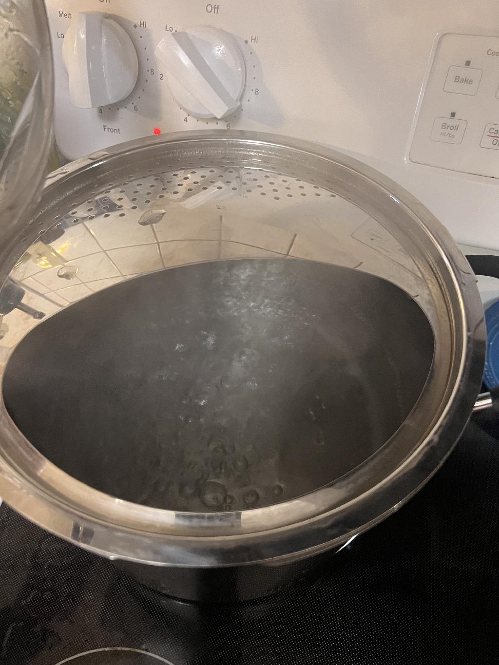 Step #12 Start cooking noodles by adding about 6 to 8 cups of water to a large stock pot, setting the heat on high.