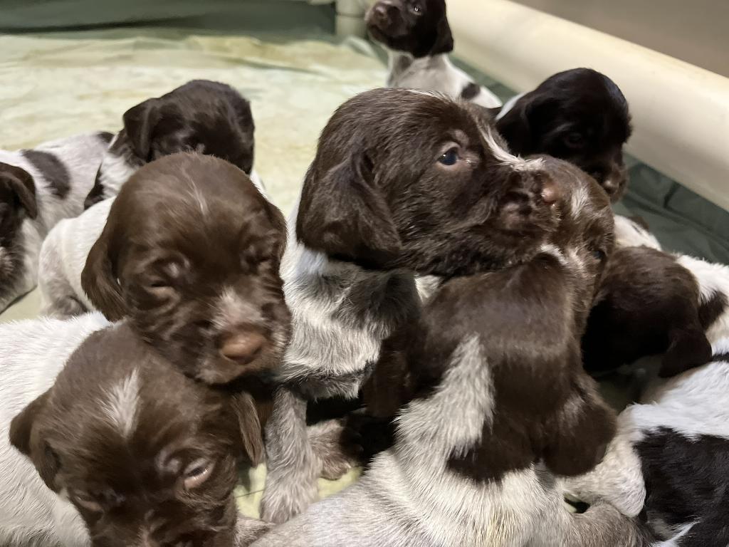 SAKS, the top producing Griffon Gundog Kennel in the US, paired with a phenomenal VC & AKC Master Hunter Stud. We have 4 males & 4 females spots remaining available for this Litter. Deposits are $500.00, fully refundable through 7 weeks of puppy age. Pups whelped 10/1/25.